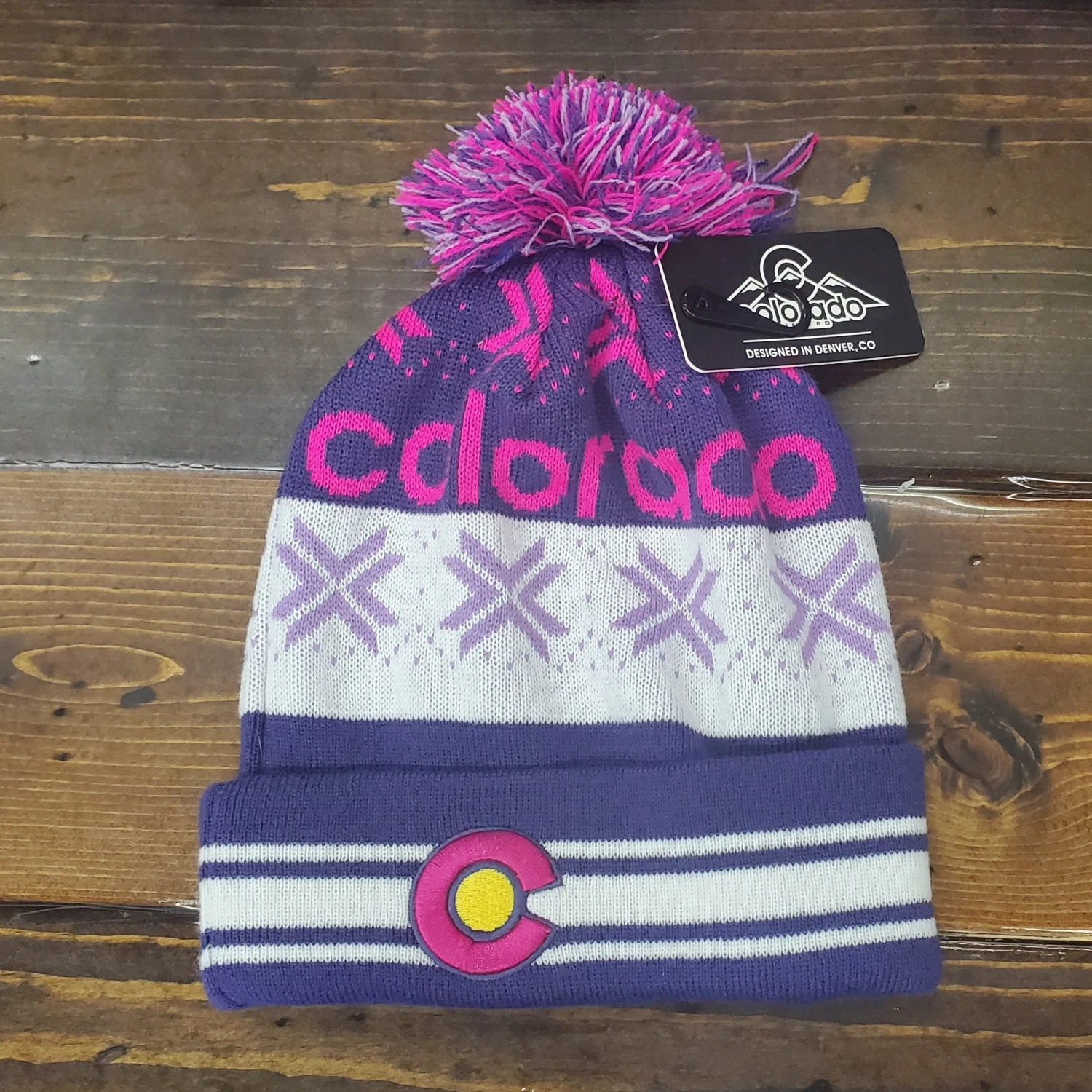 Stay warm and stealthy all winter long in this Colorado limited snowflake Puff Beanie. With a classic 3D embroidered Colorado “C” on the front