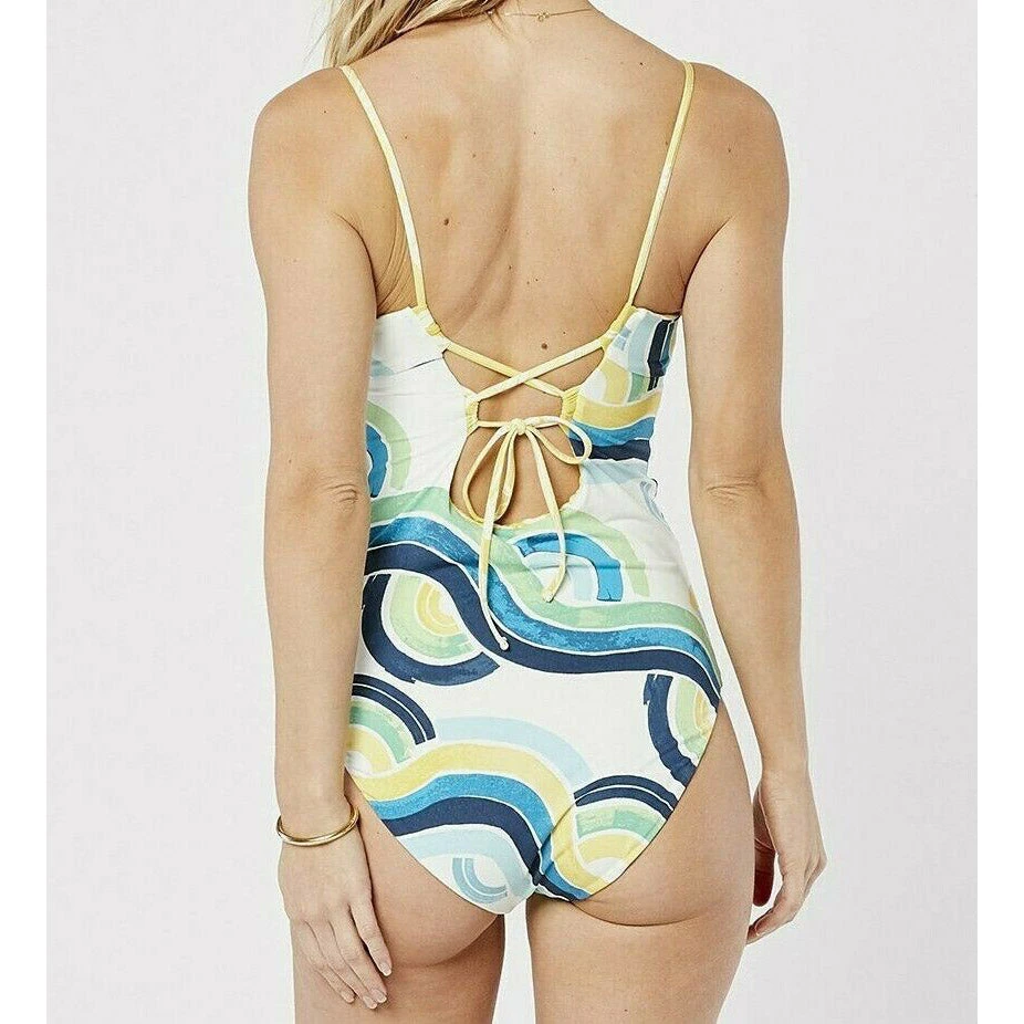 Love a triangle top, but want more coverage? This one-piece is the perfect blend of both. Gathered in the front with adjustable tie straps for a strappy look across the back.
