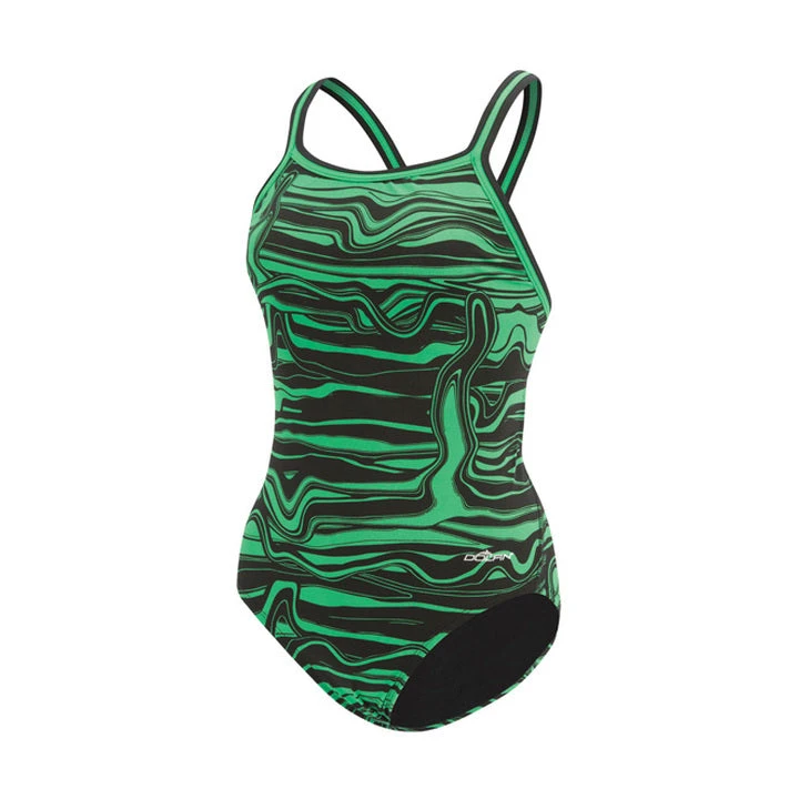 Train in style with the Dolfin Lava female one piece swimsuit. The Dolfin Lava Reliance DBX Back Female composed of completely polyester is the most durable new suit with guaranteed reliance chlorine resistance. The perfect practice suit has arrived!
