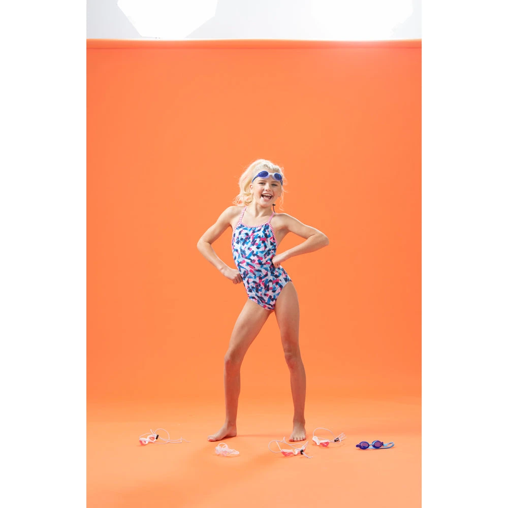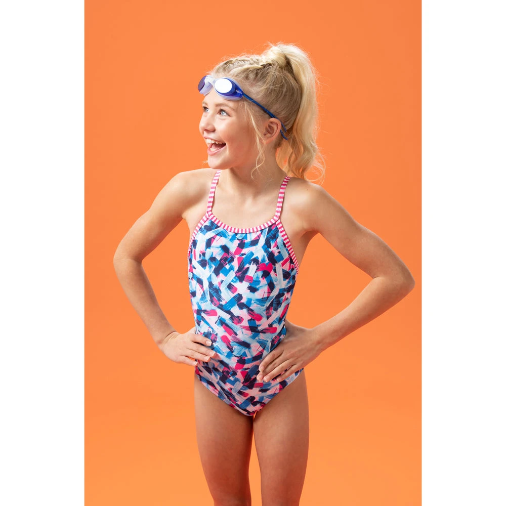 Whether she is starting swim school or splashing around at home, this Pretty Mess swimsuit for girls is absolutely needed! Providing additional sun protection for her, and a comfortable fit, there’s nothing she can’t do!
