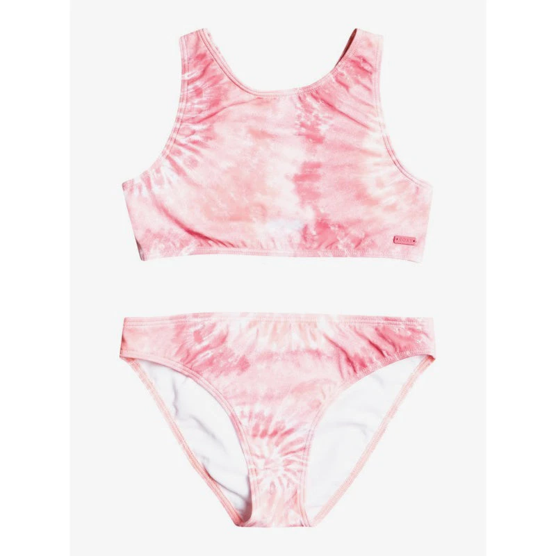 Find your groove this summer with a crop top bikini set for girls from our Colors Reflection Collection, featuring an all over tie-dye print on recycled REPREVEâ„¢ fabric. With plenty of flexibility for maximum performance, you’ll be swimming, diving, and splashing ROXY style.