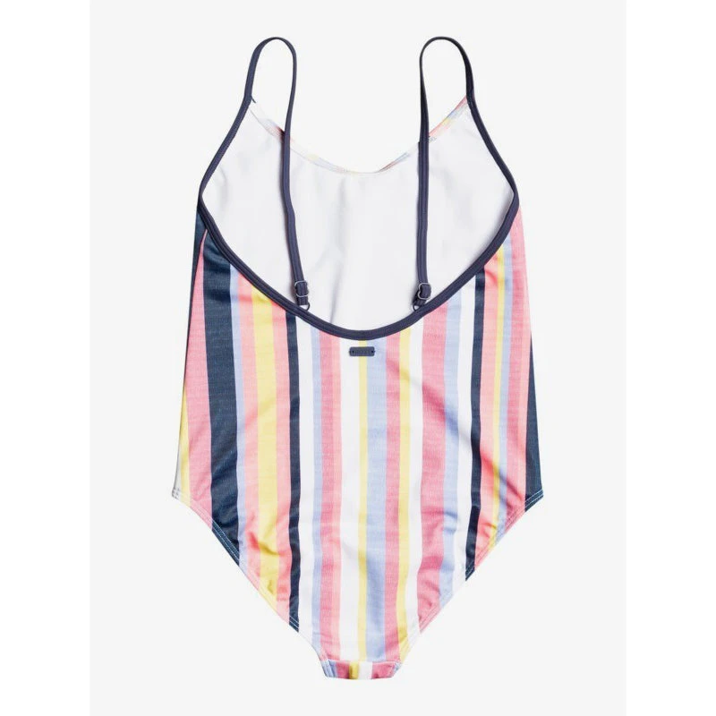 Stay summer-ready with a flattering one-piece swimsuit for women featuring a striped print with hints of mood indigo blue and heather rose-purple. From fun beach days to poolside get-togethers, the recycled REPREVEâ„¢ fabric offers unbeatable comfort and flexibility. Complete with adjustable ring and slider straps for all-day comfort.