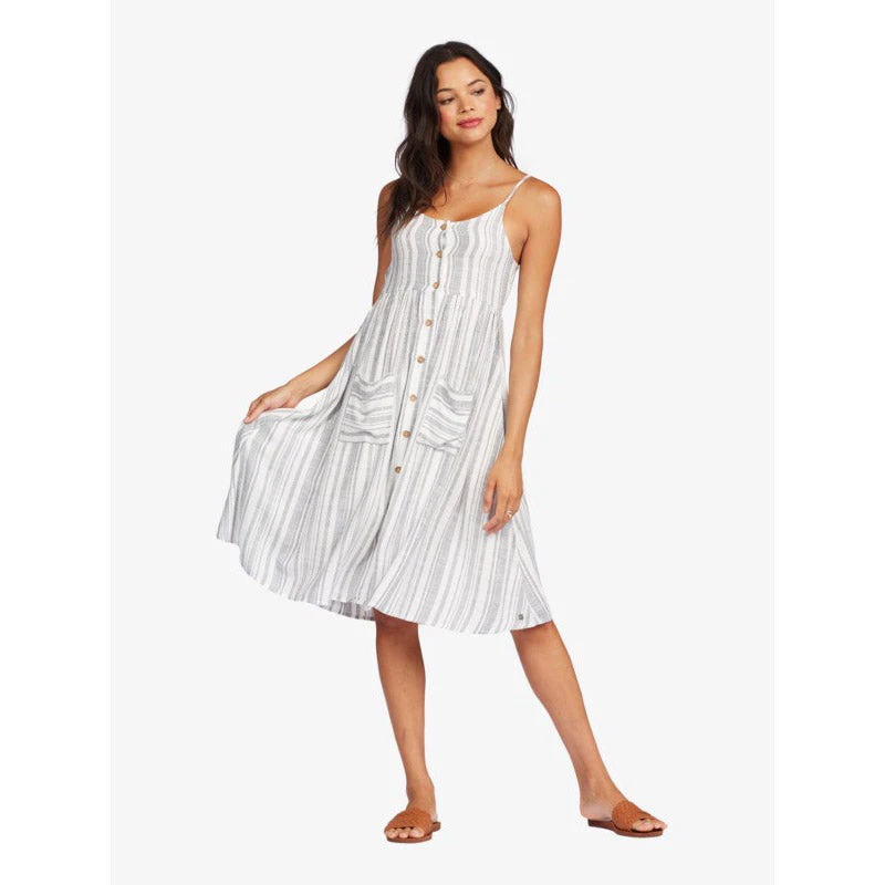 Earn your summer stripes with the Glowing Wave midi-length dress. The lightweight construction features a woven yarn-dyed fabric and elastic back smocking for a fitted bodice. An ultra-cute button front closure and patch pockets aim to make your life easier.Â