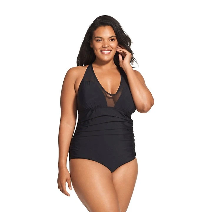 Feel confident and comfortable in this mesh-trim swimsuit. Featuring a shaping liner with tummy control for a sleek silhouette and a shelf bra with wire-free cups and wide straps, this one-piece is designed to support your every move.