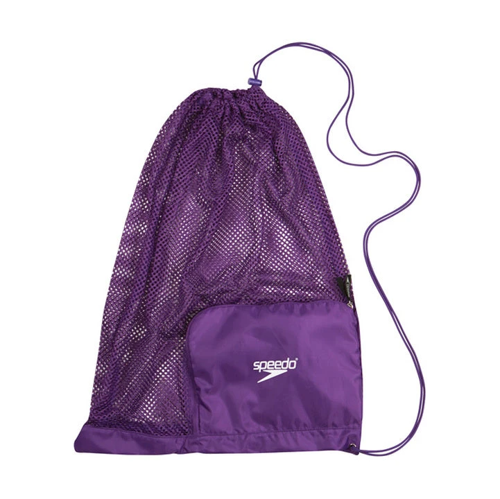 Need a way to carry all your swim equipment but you don’t want to carry a large swim bag around? The Speedo Ventilator mesh equipment bag is the solution to your dillema! Easy to carry and quick drying, the Speedo Ventilator Mesh Bag is a great bag for swim fins, swim paddles and swim apparel. Made of 100% mesh, the Speedo Ventilator mesh bag is ideal for quick dryability and airflow. Hang it on your locker or over your shoulder. Choose the color that suits your personal style!